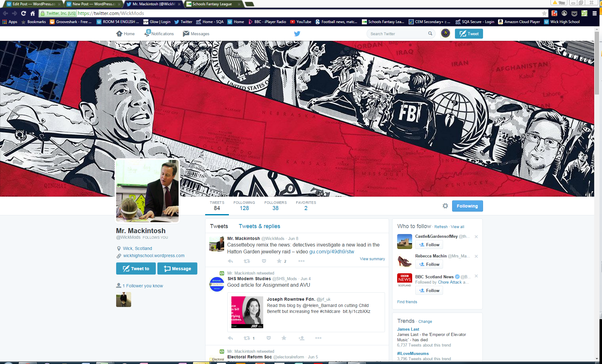 Our Modern Studies teacher Mr Mackintosh has a Twitter account @WickMods which he has set up to keep his students informed about current affairs. Find it here: @WickMods