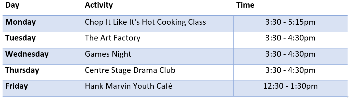 Our fantastic Youth Work Team, Step Forward Wick Youth, are back with a programme of after school activites next week. These activities are free and are open to all young people in our school. Go along and have some fun with the team!